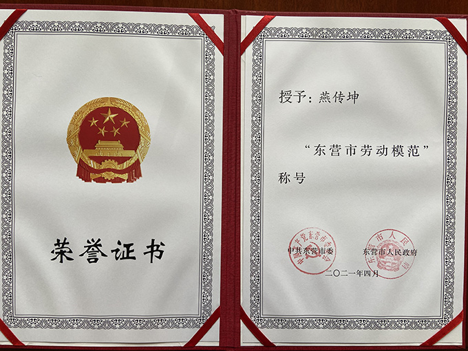 燕傳坤榮獲“東營(yíng)市勞動(dòng)模...