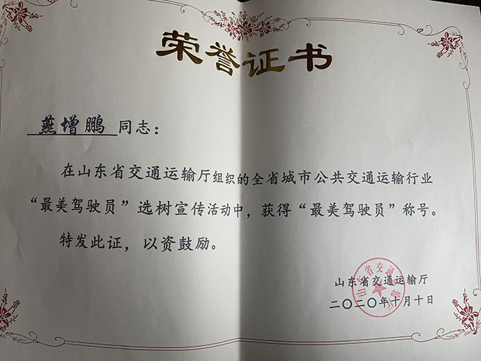 燕增鵬獲得“最美駕駛員”...