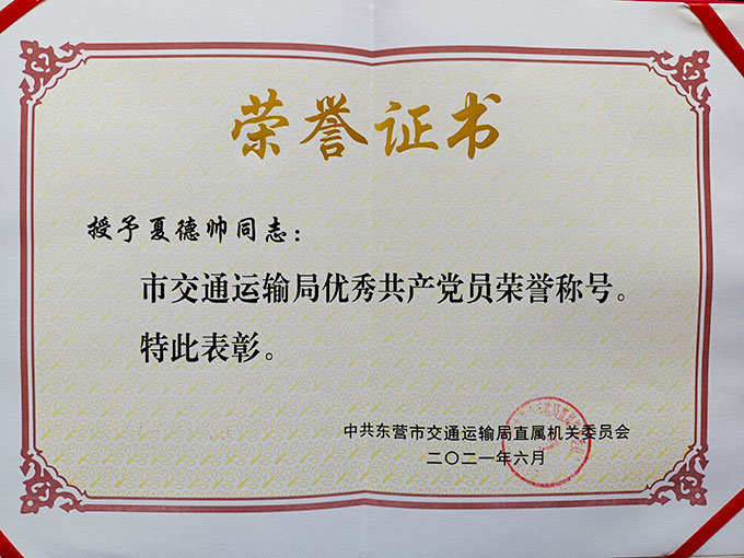 夏德帥榮獲”市交通運(yùn)輸局...