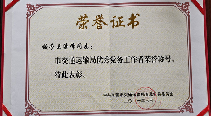 王清峰榮獲“市交通運(yùn)輸局...