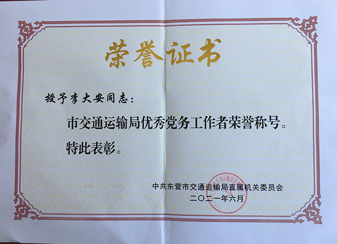 李大安榮獲“市交通運(yùn)輸局...