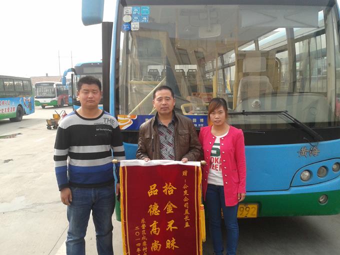 4月2日,家住郝家鎮(zhèn)郝家村的成艷艷拿著一面寫有“拾金不昧、品德高尚”的錦旗來到市公交公司汽車四隊,感謝車隊駕駛員蓋長孟師傅拾金不昧的高尚品德。東營日報黃河口晚刊的記者也來到車隊,采訪了蓋長孟師傅。