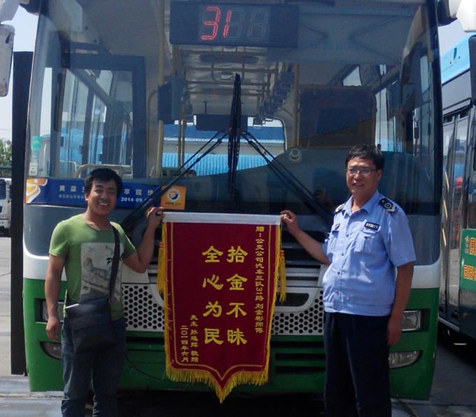 6月3日上午,家住勝華的孫連輝先生拿著一面寫有“ 全心為民, 拾金不昧”的錦旗來到市公交公司汽車三隊(duì),緊緊握住車隊(duì)駕駛員劉金彬師傅的手,連聲道謝,對(duì)他拾金不昧的高尚品德連聲稱贊。