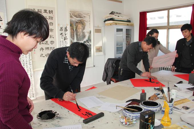 近日,市公交公司工會(huì)組織公司“書畫攝影社”開展了為2012年度“公司先進(jìn)工作者”贈(zèng)送春聯(lián)活動(dòng),號(hào)召一發(fā)出,廣大書畫攝影社成員都積極參與,書畫社社長及書畫社理事親自執(zhí)筆,成員們有的裁紙,有的研磨,有的則忙著掛晾春聯(lián),一片繁忙熱鬧的迎新春景象,一幅幅泛著墨香的春聯(lián),讓過年的味道更加濃郁。春聯(lián)已于2月5日陸續(xù)送到各位先進(jìn)手中。