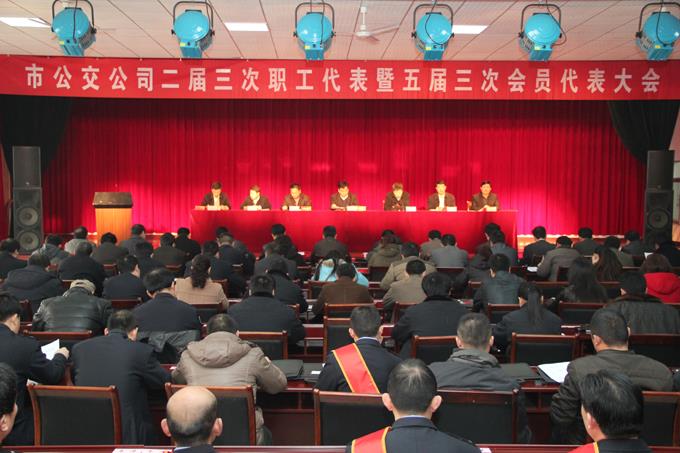 2013年2月27日,市公交公司隆重召開了二屆三次職工代表暨五屆三次會員代表大會。公司領導朱新民、李學忠、趙龍、崔磊、劉海、劉樂華、孫紅光及74名代表參加了會議。