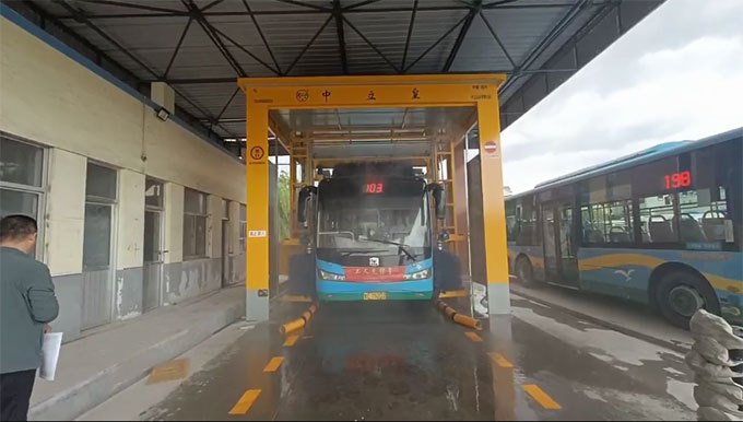 該洗車機(jī)為5刷通道式洗車機(jī),造型簡單美觀,整體尺寸小,該洗車機(jī)的投入使用大大減輕了工作人員的勞動強(qiáng)度,提升了公交服務(wù)水平,保證了車輛環(huán)境衛(wèi)生整潔、干凈,。為下一步公交車的車容車貌提升、公交服務(wù)水平提升將發(fā)揮重要作用。