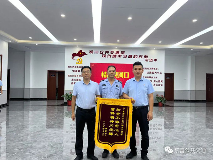 在7月10日下午,杜先生帶著“拾金不昧好心人,雷鋒精神閃光輝”的錦旗來到汽車一隊(duì)感謝車隊(duì)51路蘇文海師傅的拾金不昧。