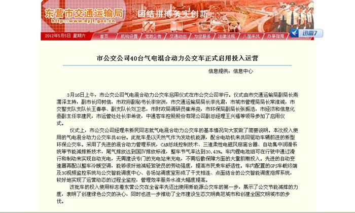 2012年3月16日東營交通網站報道