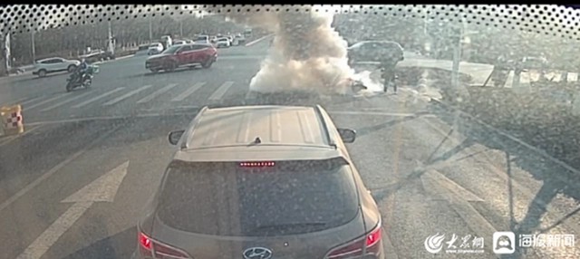 眼看火苗隨風(fēng)越燒越旺,危急時(shí)刻,17路駕駛員張曉良駕駛著魯E97102公交車運(yùn)行途經(jīng)此處等紅燈,遠(yuǎn)遠(yuǎn)地看到前方冒著火光和滾滾濃煙的電動(dòng)車,他拿起車載滅火器沖了過去,“當(dāng)時(shí)路上的行人和車輛較多,情況十分的危急。”張曉良回憶說,他沒顧上仔細(xì)查看,把一瓶滅火器噴完,便抓緊回到車上繼續(xù)運(yùn)行。